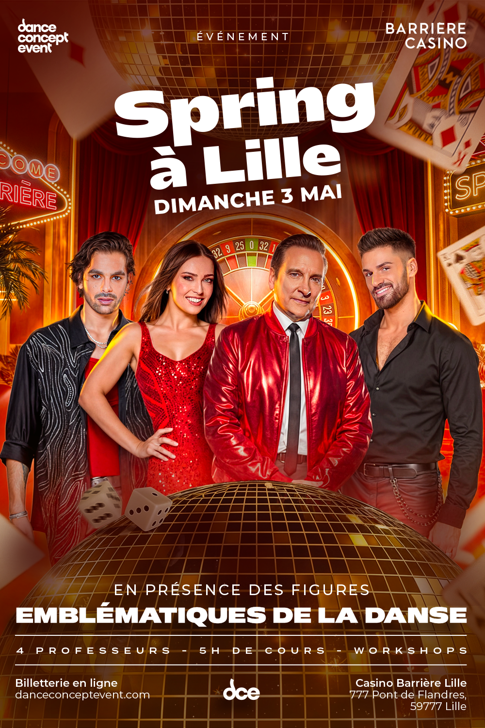 Le dimanche 3 mai 2026, Dance Concept Event fait son grand retour avec un programme exceptionnel. Cette année, le Casino Barrière Lille accueillera non pas 2 danseurs, non pas 3 danseurs mais 4 ! ET ÇA, J’ACHÈTE !